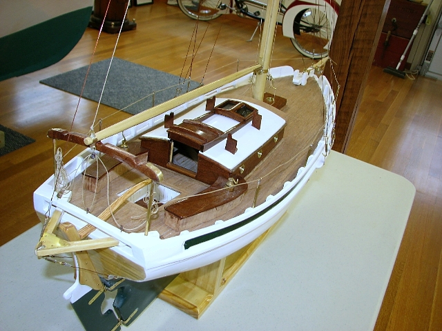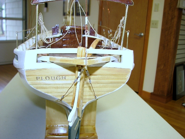 Plough was our 29’6″ Bristol Channel Cutter that I built for us in 1995-’97. I made 2 models, the first is the “skeleton” which is a special kind of model that show how a classic wooden boat is framed. The first few photos are the two side by side, then the skeleton finished and then the model of the boat.